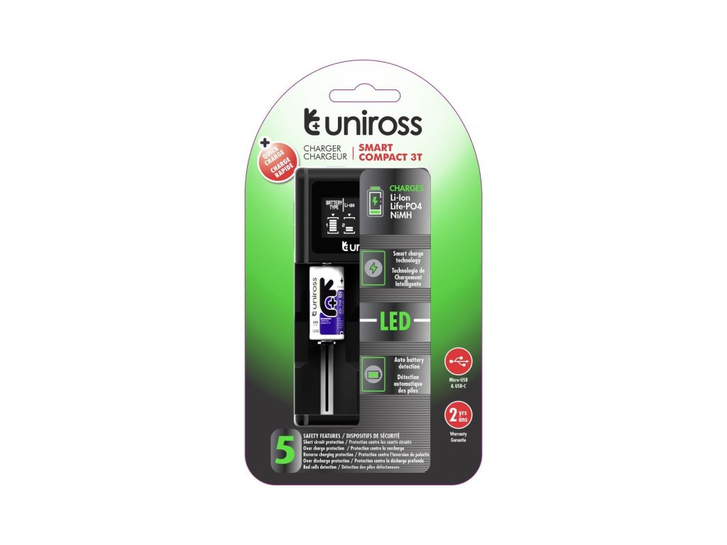 UNIROSS Li-ion/Ni-MH/LiFePo4 kompaktná rýchlonabíjačka s LCD displejom