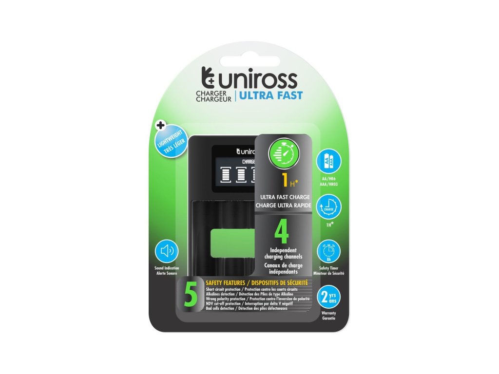 UNIROSS procesorová rýchlonabíjačka LCD AA/AAA s ochranou