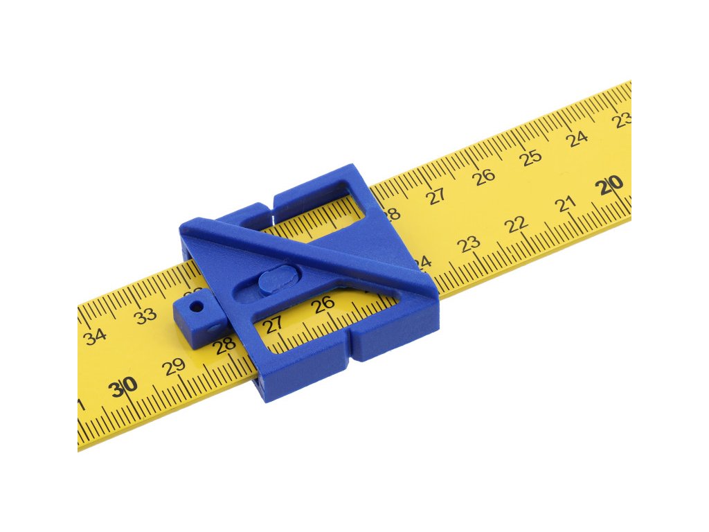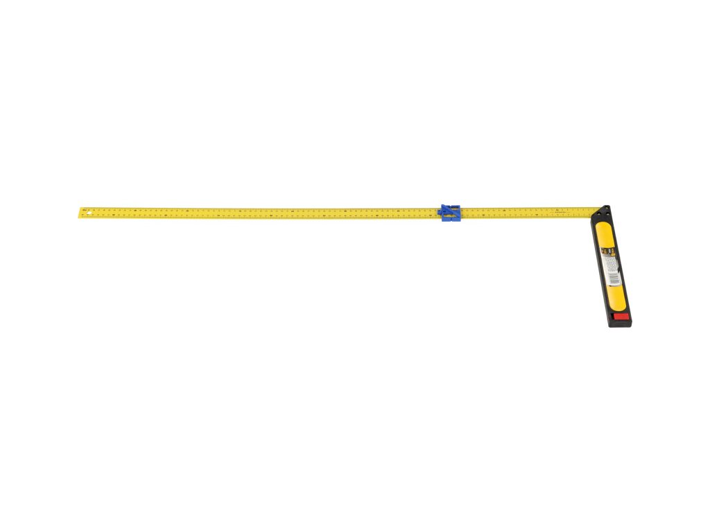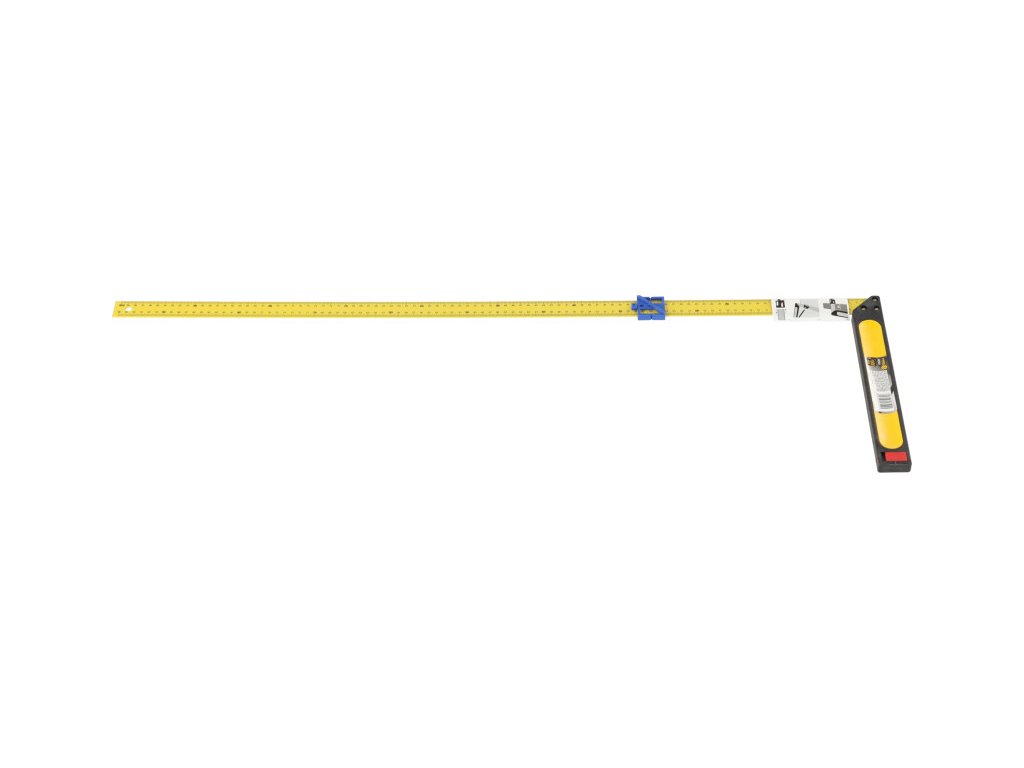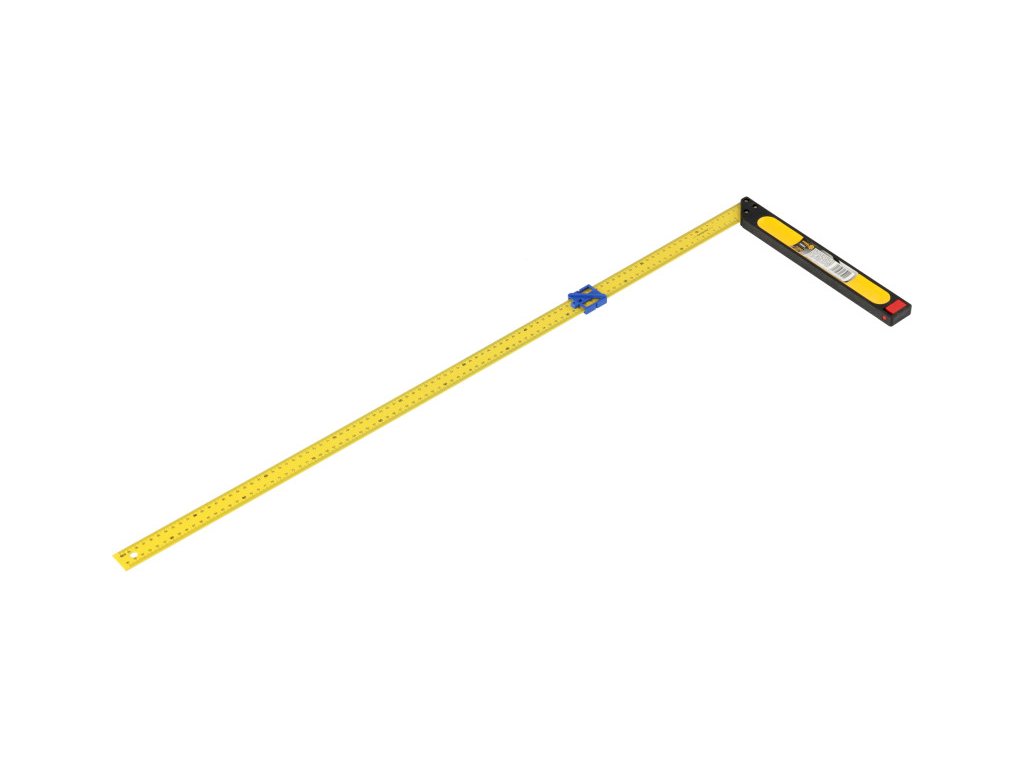 1000 mm méretű szögletes konzol, amely egy masszív két komponensű lábból áll, praktikus kihúzható támogatóval és csúszkával. Acél rúd, világos milliméter beosztással, a szögletes konzol széleire helyezhető.