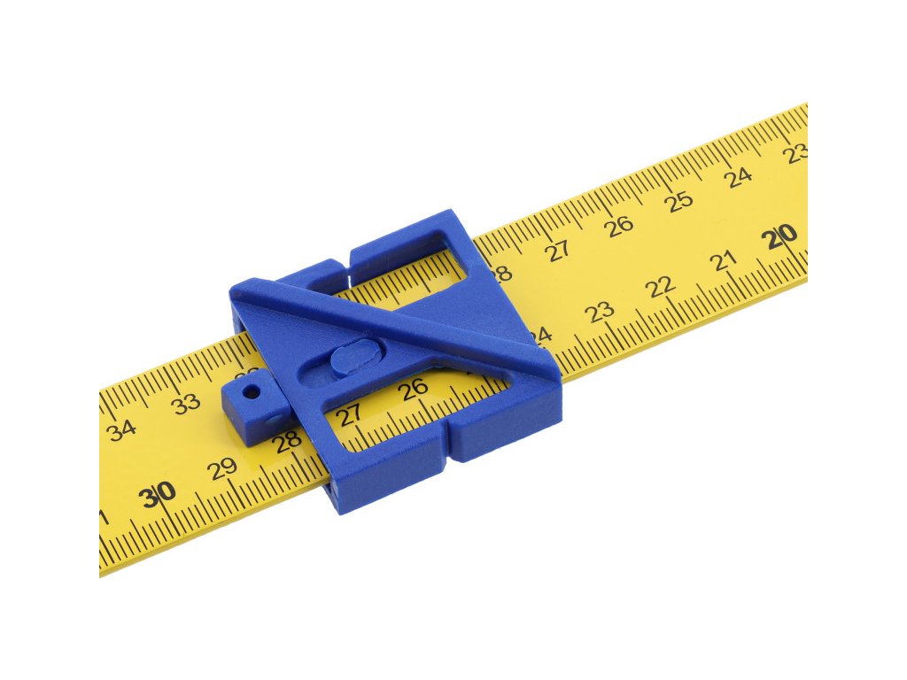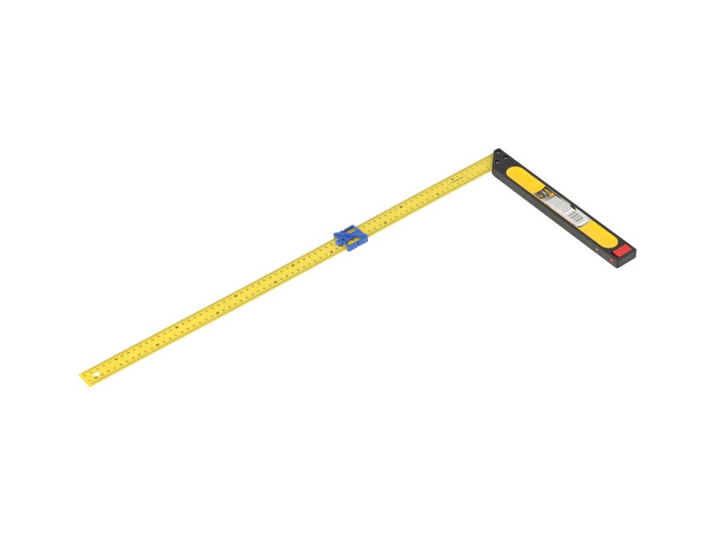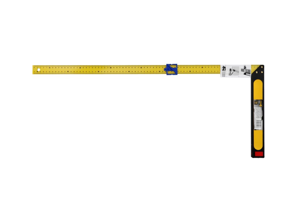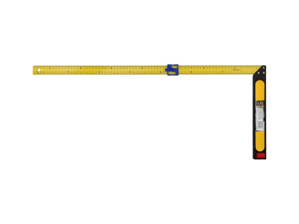 Sarokszög, 750 mm mérettel, amely egy masszív két-komponensű lábból áll, praktikus kihúzható támasz és csúszkával. Acélrúd világos milliméterbeosztással a sarokrúd szélén való támaszkodáshoz.