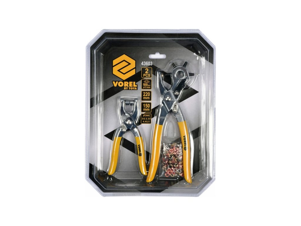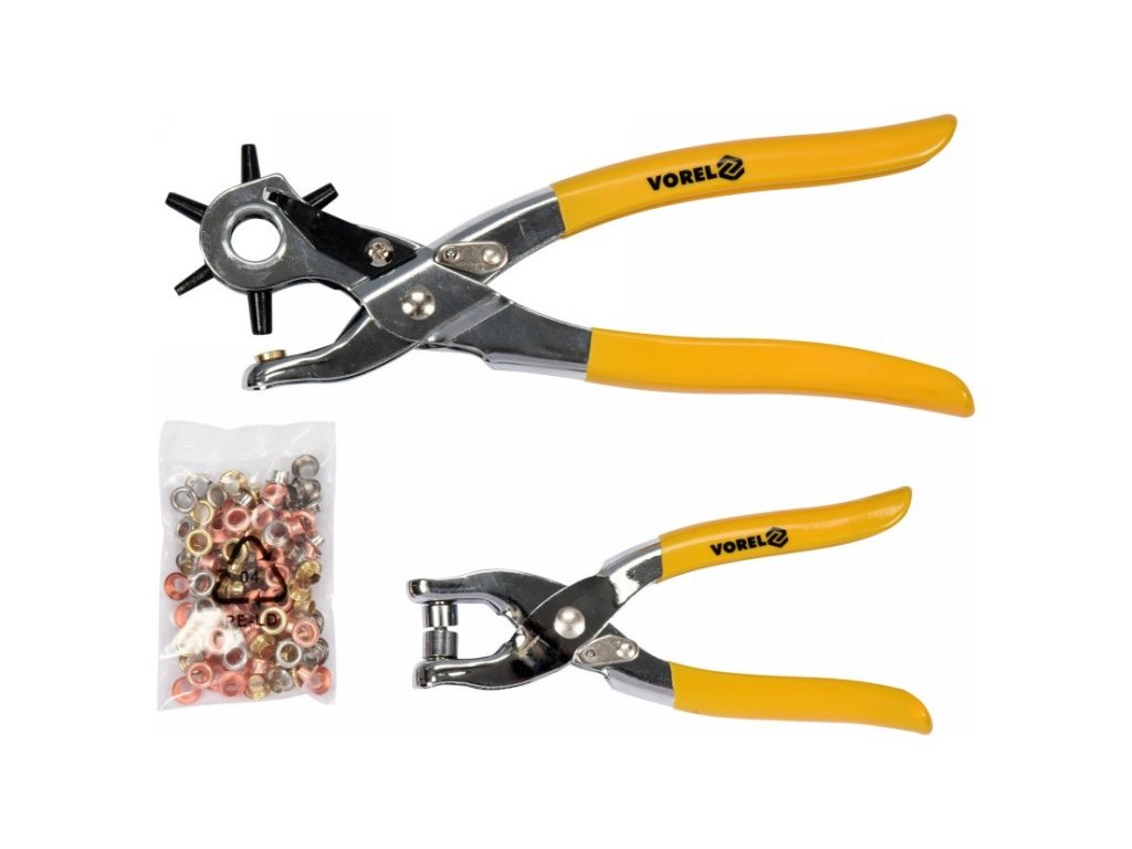 VOREL Kožené prepichovacie kliešte s revolverom a koženou nitovačkou + 100 nitov