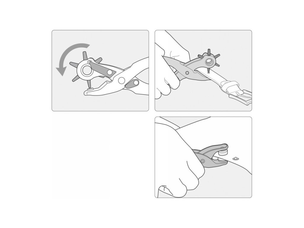 Bőr, műbőr, gumi, karton és más anyagok lyukasztásához.