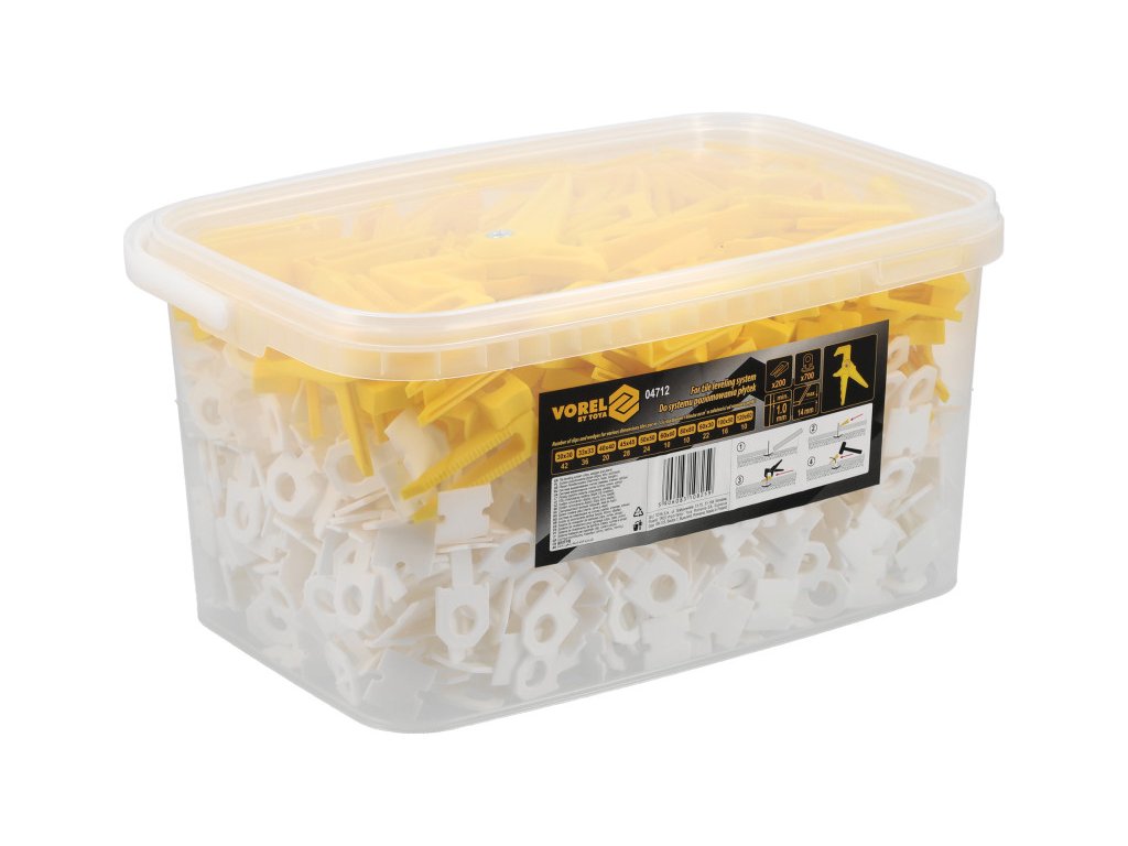 VOREL Sada na niveláciu dlažby 1 mm (700 podstavcov + 200 klinov + kliešte)