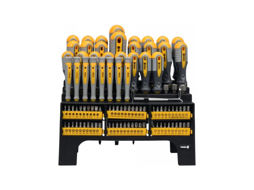 - 23 csavarhúzó: lapos: 3 x 75, 4 x 100, 5.5 x 75, 5.5 x 100, 6.5 x 100, 6.5 x 150, 8 x 150 mm - Phillips: PH0 x 75, PH1 x 75, PH1 x 100, PH1 x 150, PH2 x 100, PH2 x 150 mm - Pozidriv: PZ0 x 75, PZ1 x 75, PZ2 x 100 mm - TORX: T10 x 75, T20 x 75, T25 x 100, T30 x 100 mm - Négyzet: S0 x 75, S1 x 75, S2 x 100 mm