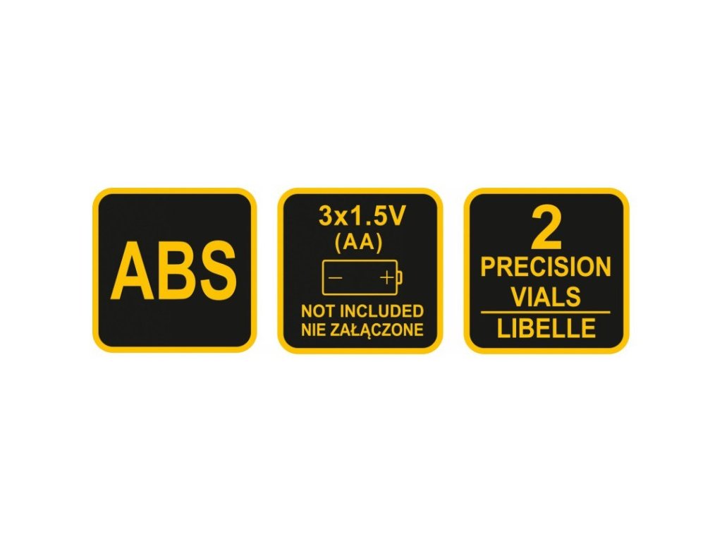 - három lyuk a lézer rögzítéséhez, például szögekkel vagy szegekkel, például fából készült felületre