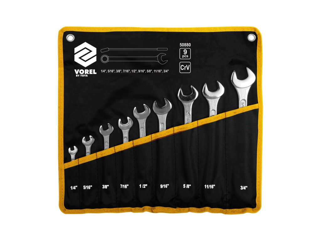 - A Vorel 50880 márkájú colos villáskulcs készlet, 1/4"-3/4" méretekben.