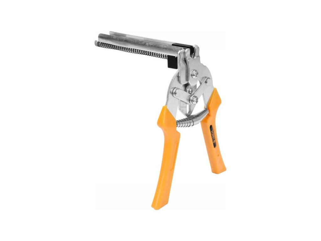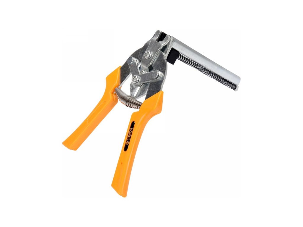Fogók, melyeket kerítéshálók gyors és hatékony rögzítésére terveztek a feszítődróthoz. Használatosak hálófalú keretek építésénél is, például nyúl- vagy baromfitartás céljából. A fogók horganyzott vastag acéllemezből készültek, a nyél ergonómikus vinil borítással van ellátva. A fogó munkáját jelentősen megkönnyíti a tűzőgép, amely körülbelül 40 E típusú kapocs tárolására képes /például vorel 49841/ a fogó egy munkafázis során a fémkapcsot a csatlakoztatott drótok köré szorítja. / Egy nyél lenyomásával. Fogók, amelyeket kerítéshálók gyors és hatékony rögzítésére terveztünk a feszítődróthoz. Használatosak hálófalú keretek építésénél is, például nyúl- vagy baromfitartás céljából. Töltsük be a kapcsokat a tűzőgépbe. Helyezzük a csatlakoztatott drótokat a dugó etető vágószerszámba és szorítsuk össze a nyelét. A menet a csatlakoztatott drótok köré tekeredik. Fogók