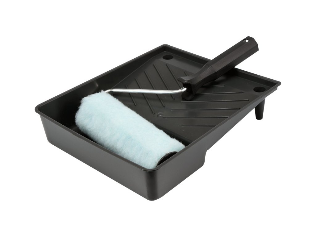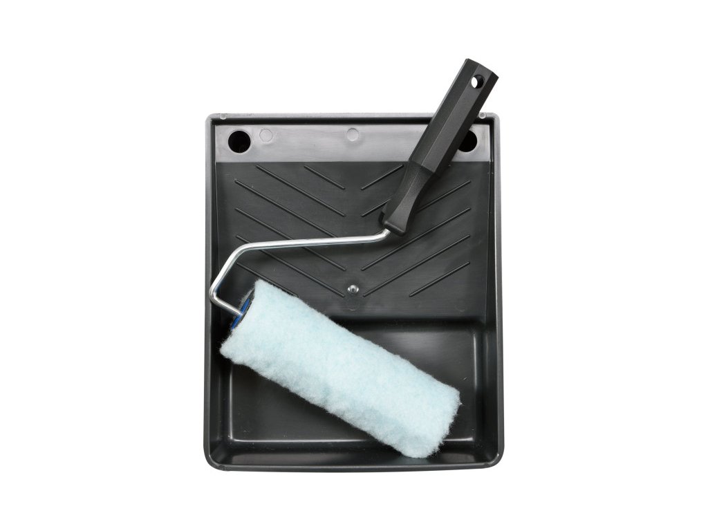 Könnyű festőhenger, 18 cm hosszúsággal, műanyag zománccal a kényelmes festékmerítéshez és a felesleges festék lecsöpögtetéséhez.