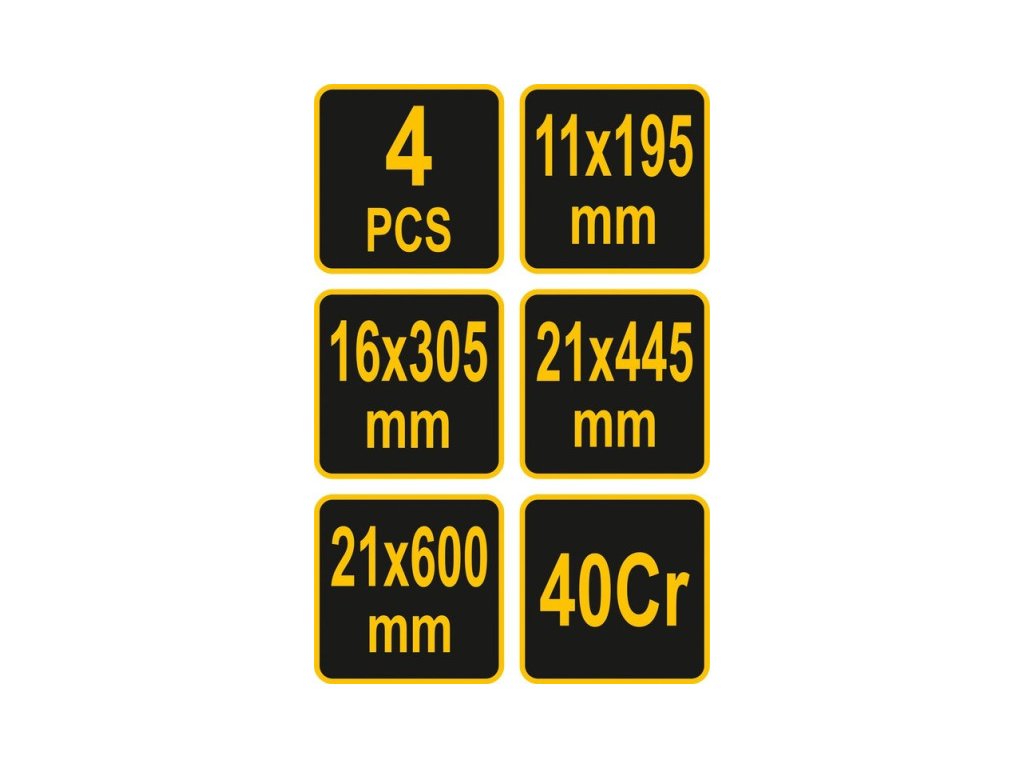 40Cr acélból készült pengék, melyeket szétszerelésre, aláaknázásra, hajlításra vagy összeszerelésre használnak. A nyelvek tartós műanyaggal vannak bevonva a megfelelő fogás érdekében. Rendelkeznek egy hajlított hegyűvel, ami egy további támaszpontot kínál szűk területeken dolgozva, és az élezett vég könnyedén bejut az összeillesztett alkatrészek közé.