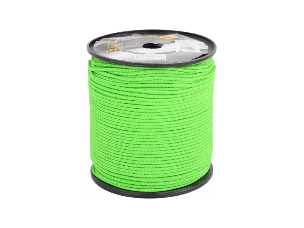 16 polipropilén szálból készült fonott kötél, polipropilén szakítószilárdságú maggal kiegészítve.