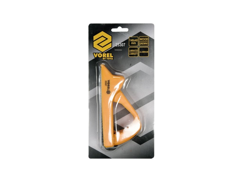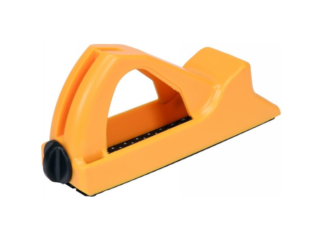 Vysokokvalitná sadrokartónová doska s oceľovou vložkou označenou 65 Mn, pripevnená k pevnému plastovému korpusu Pracovná dĺžka je 140 mm, šírka 40 mm.