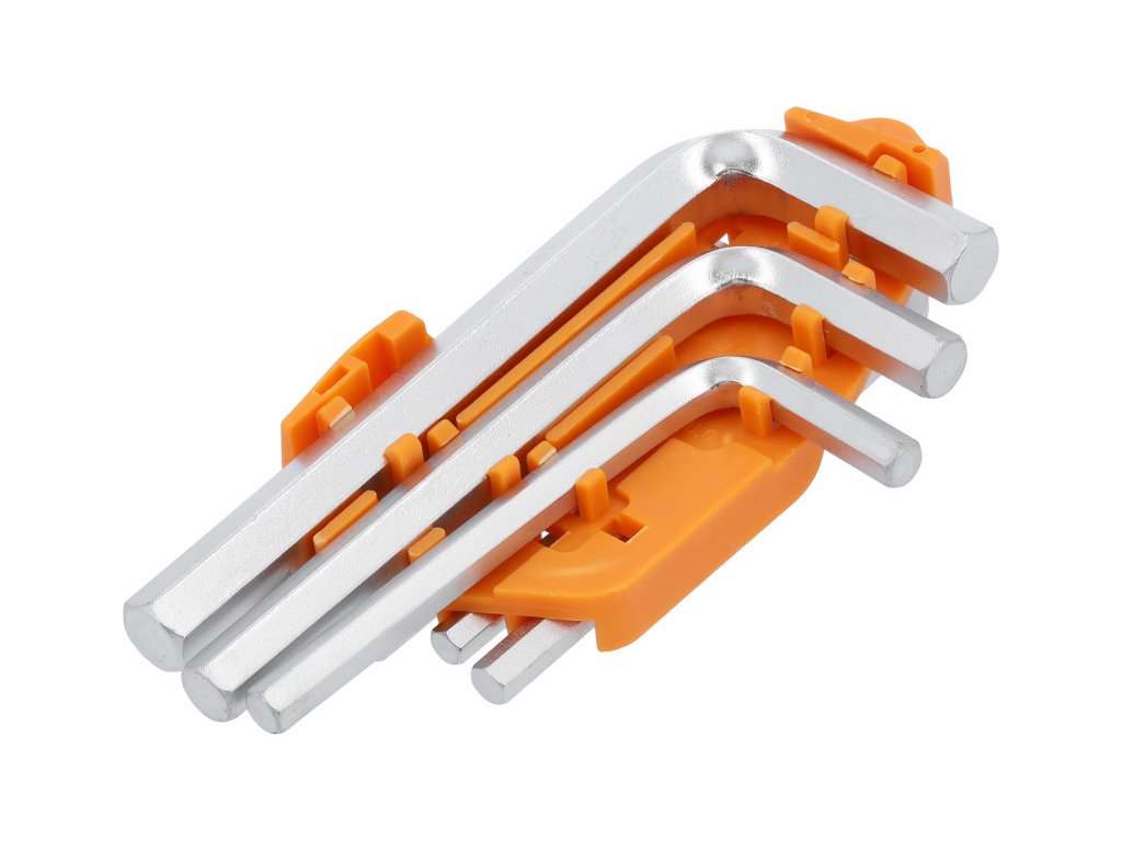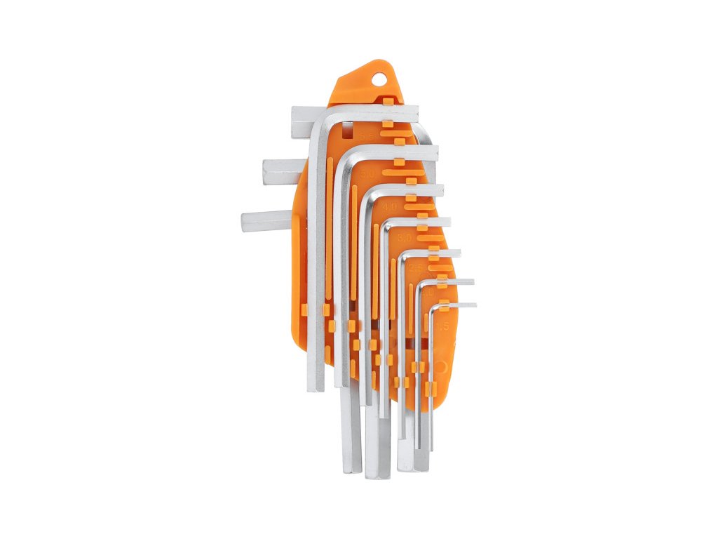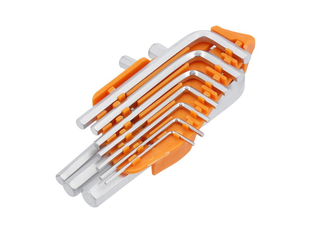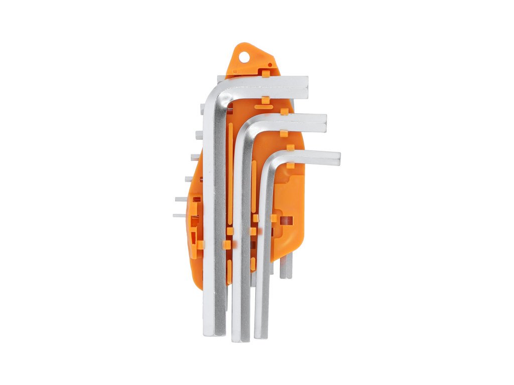 Egy Vorel 56393-as hatszögkulcs-készlet. Szénacélból készült.