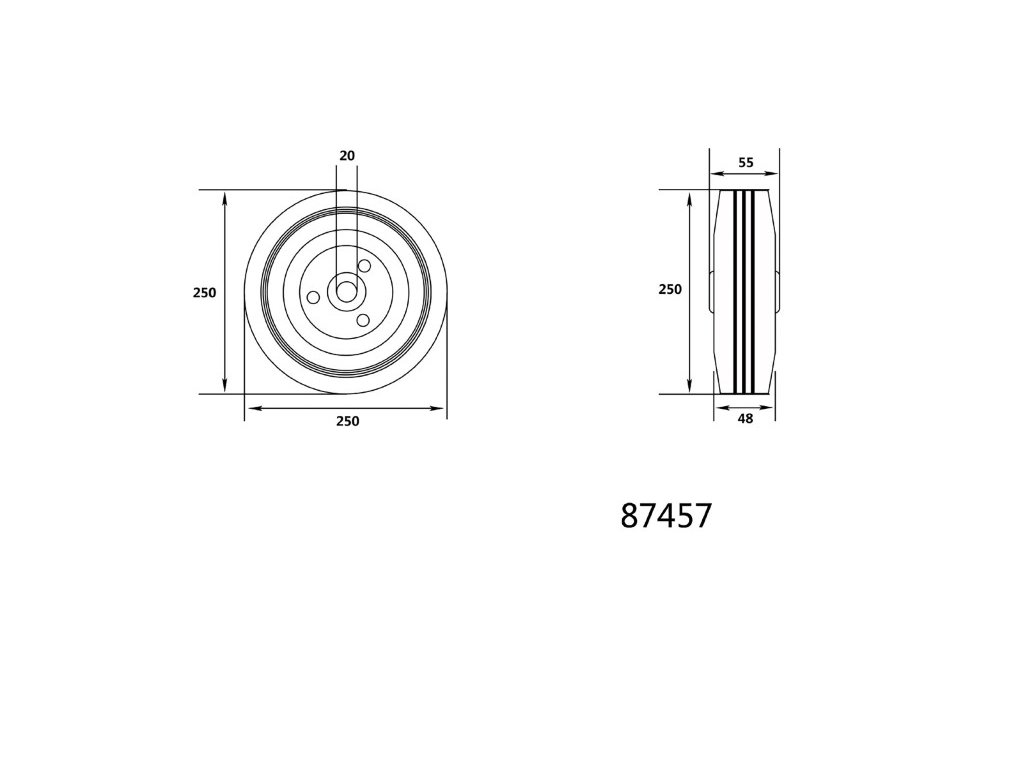 Koleso gumené čierne 250 x 48 x 55 mm 180 kg