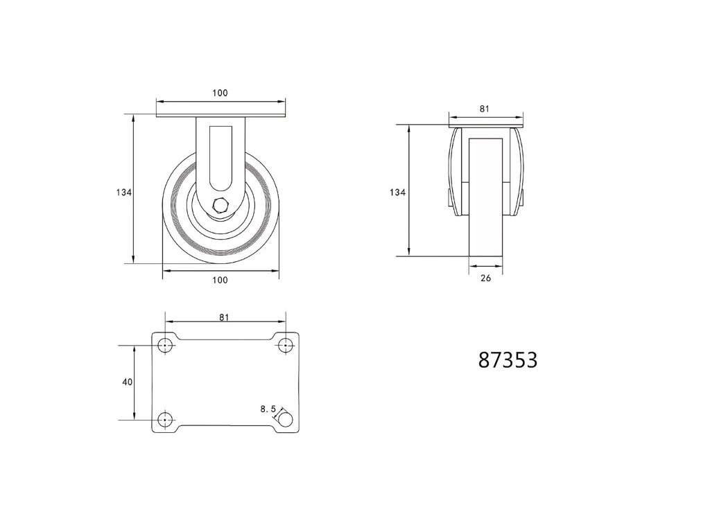 VOREL Priemyselné koleso Pevná vidlica 100 mm 45 kg