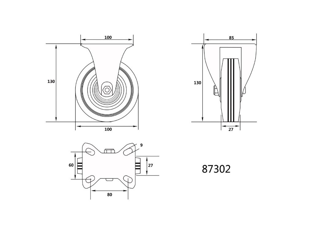 Koleso fixné s čiernou gumou 100 x 27 x 130 mm 60 kg