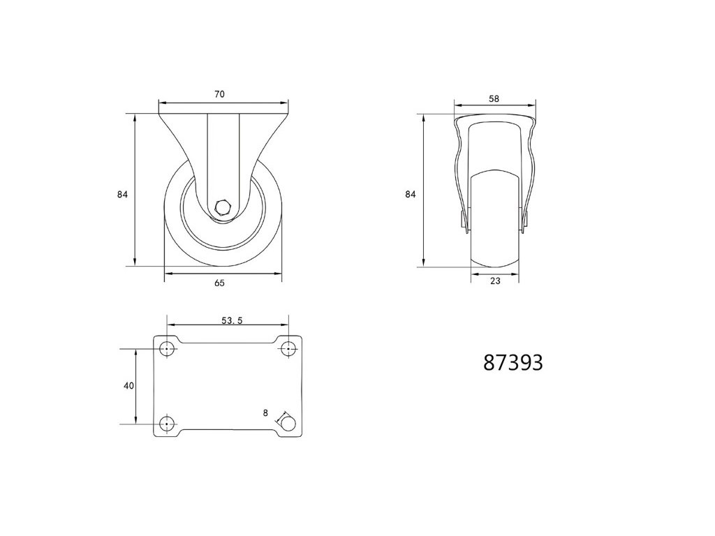 Koleso fixné polypropylénové 65 x 23 x 84 mm 30 kg