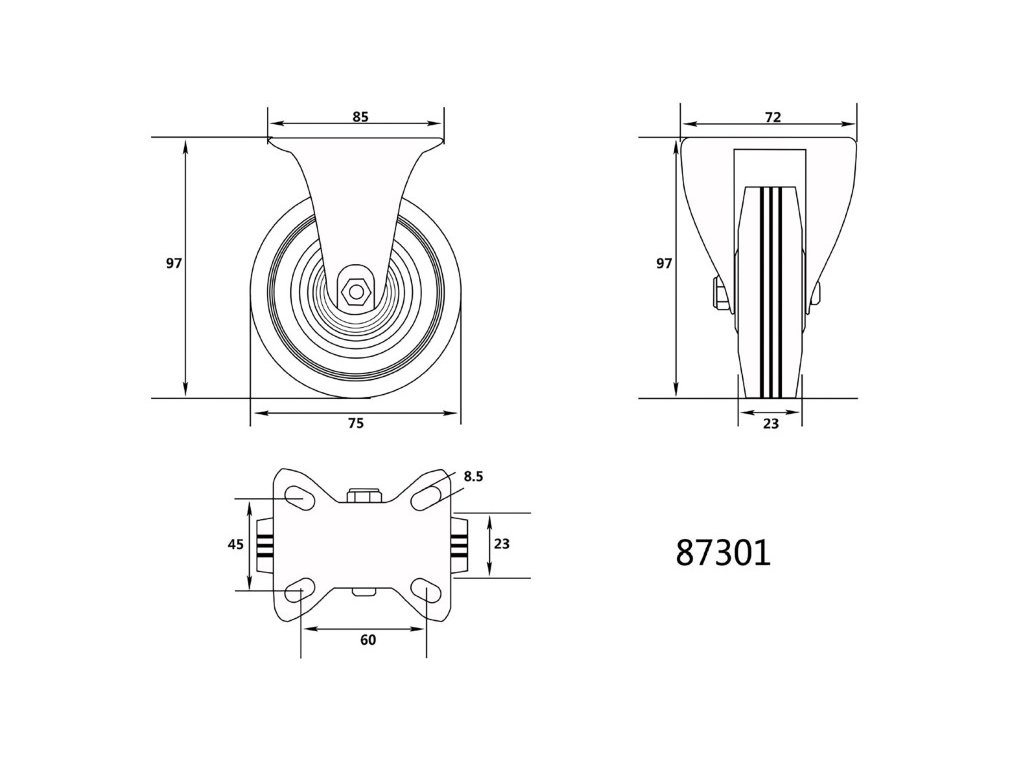 Koleso fixné s čiernou gumou 75 x 23 x 97 mm 40 kg