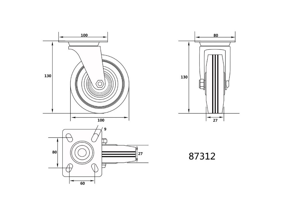 VOREL Priemyselná otočná vidlica kolesa 100 mm 60 kg