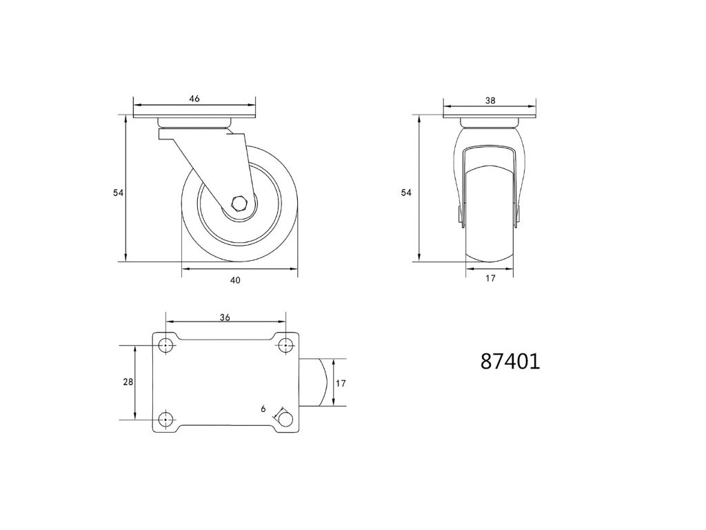 Koleso otočné polypropylénové 40 x 17 x 54 mm 20 kg