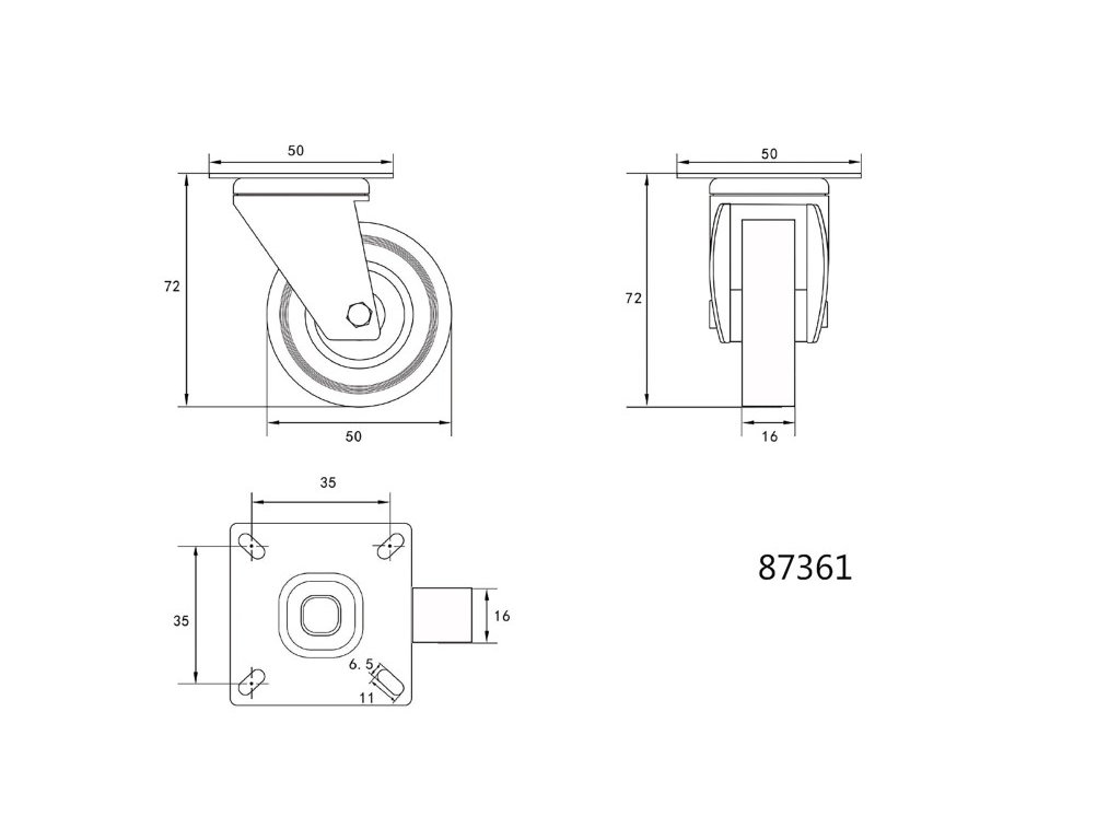 VOREL Priemyselná otočná vidlica kolesa 50 mm 20 kg