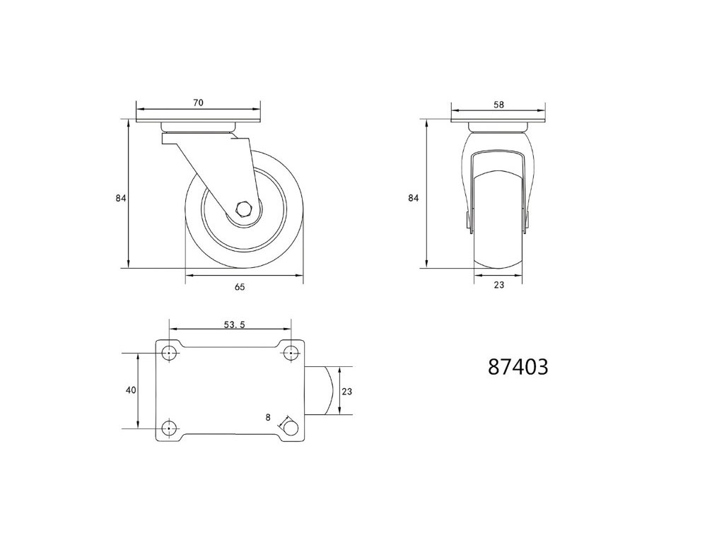VOREL Priemyselná otočná vidlica kolesa 65 mm 30 kg