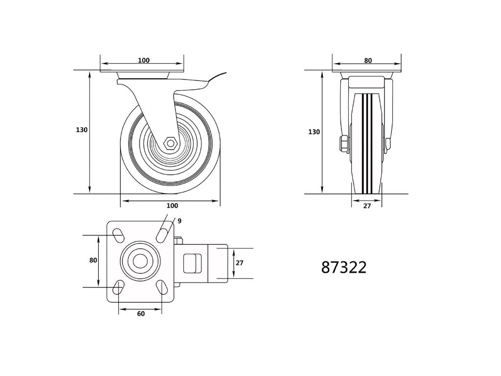 VOREL Priemyselné koleso s otočnou brzdou vidlice 100 mm 60 kg