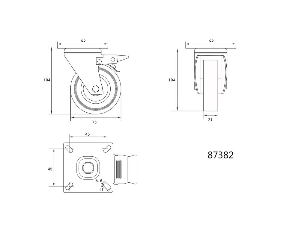 VOREL Priemyselné koleso s otočnou brzdou vidlice 75 mm 30 kg