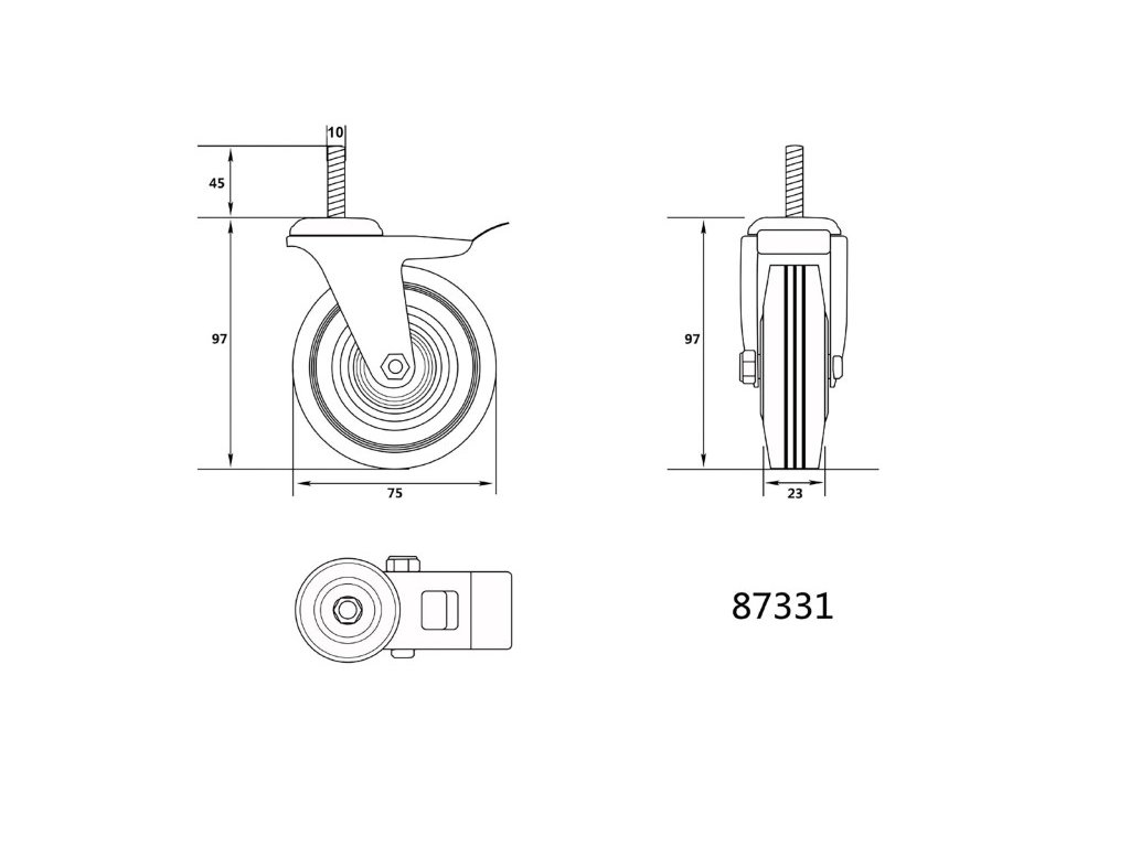 VOREL Priemyselné koleso s otočnou brzdou 75 mm 40 kg