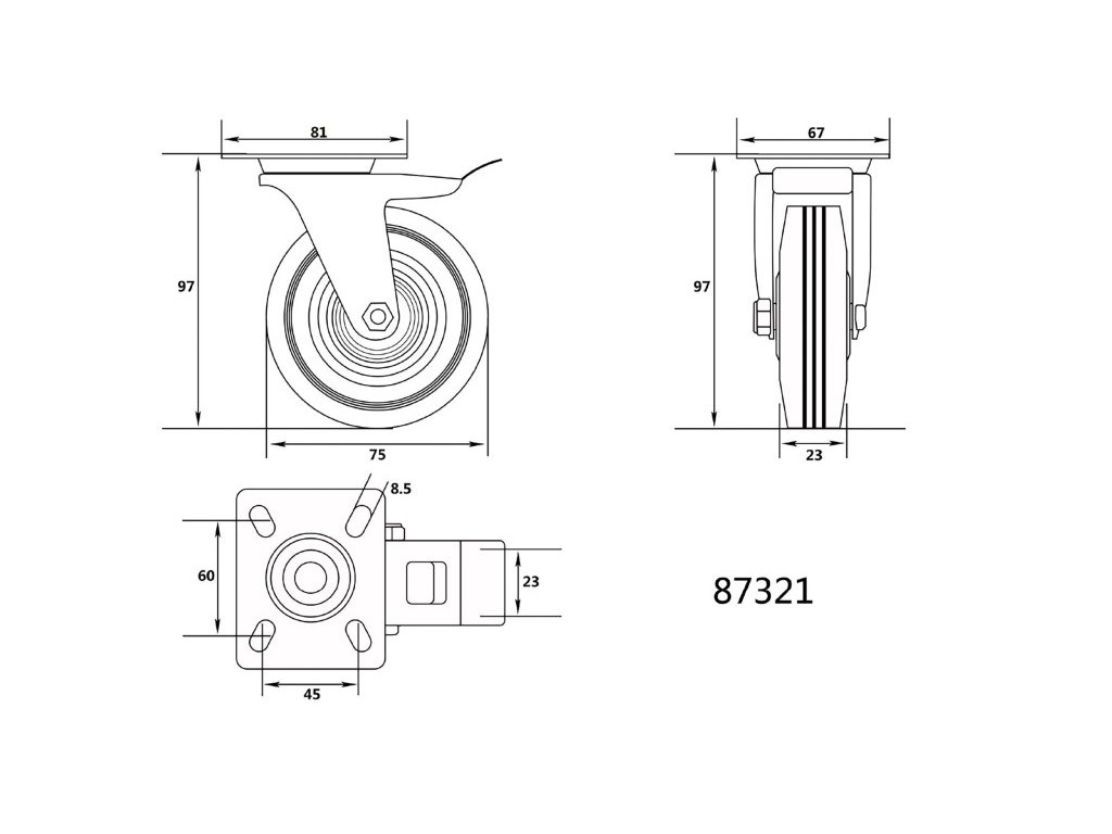 VOREL Priemyselné koleso s otočnou brzdou 75 mm 40 kg