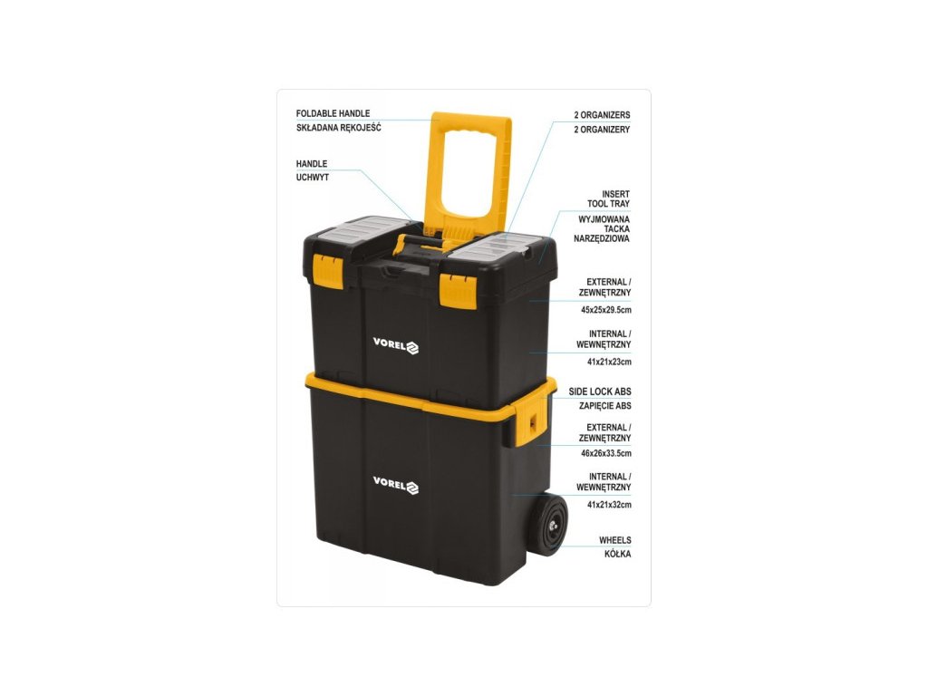 VOREL Box na náradie na kolieskach 2 diely 460 x 260 x 630 mm