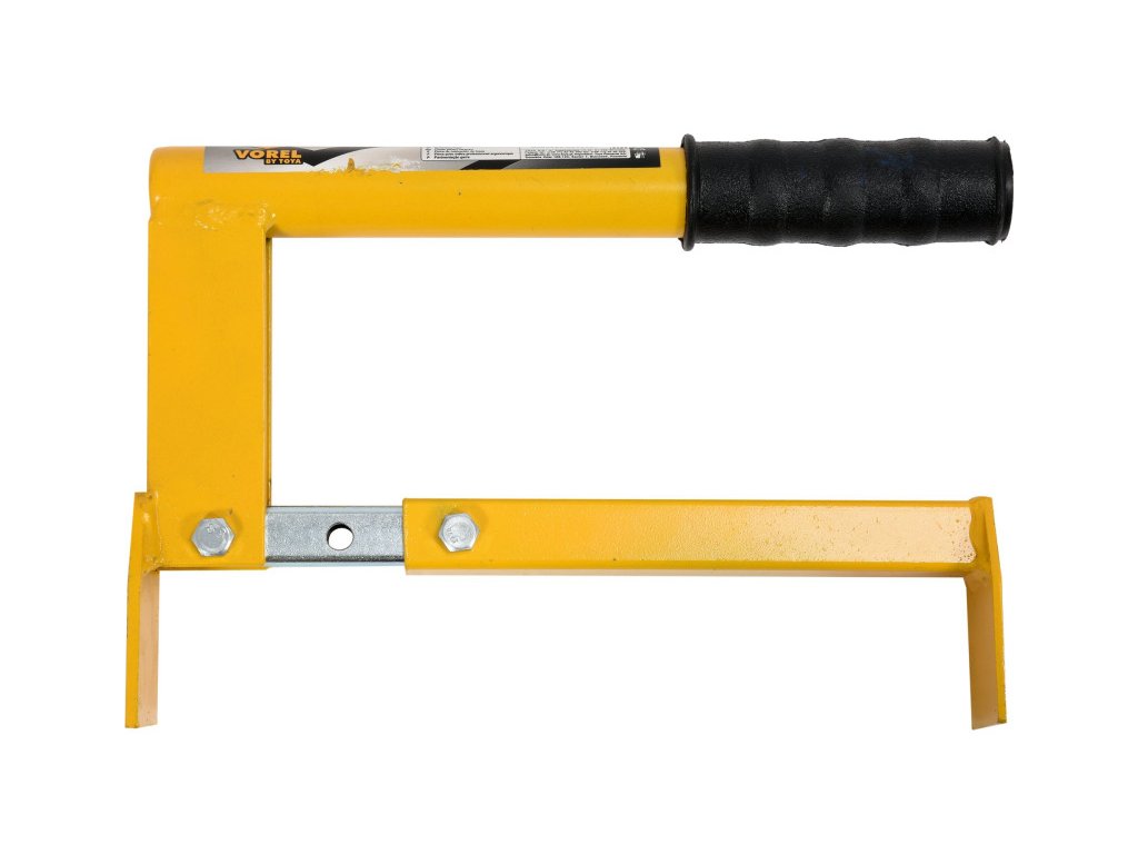 Járda fogó, egykezesen állítható. Téglák, klinkertégla, térkő és kis méretű csempék kényelmes és biztonságos kezelésére használható, akár betonból vagy kőből készültek.