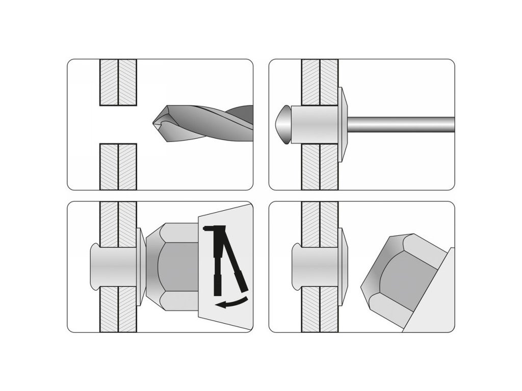 - a szegecsek mérettartománya: 2,4; 3,2; 4,0; 4,8 mm