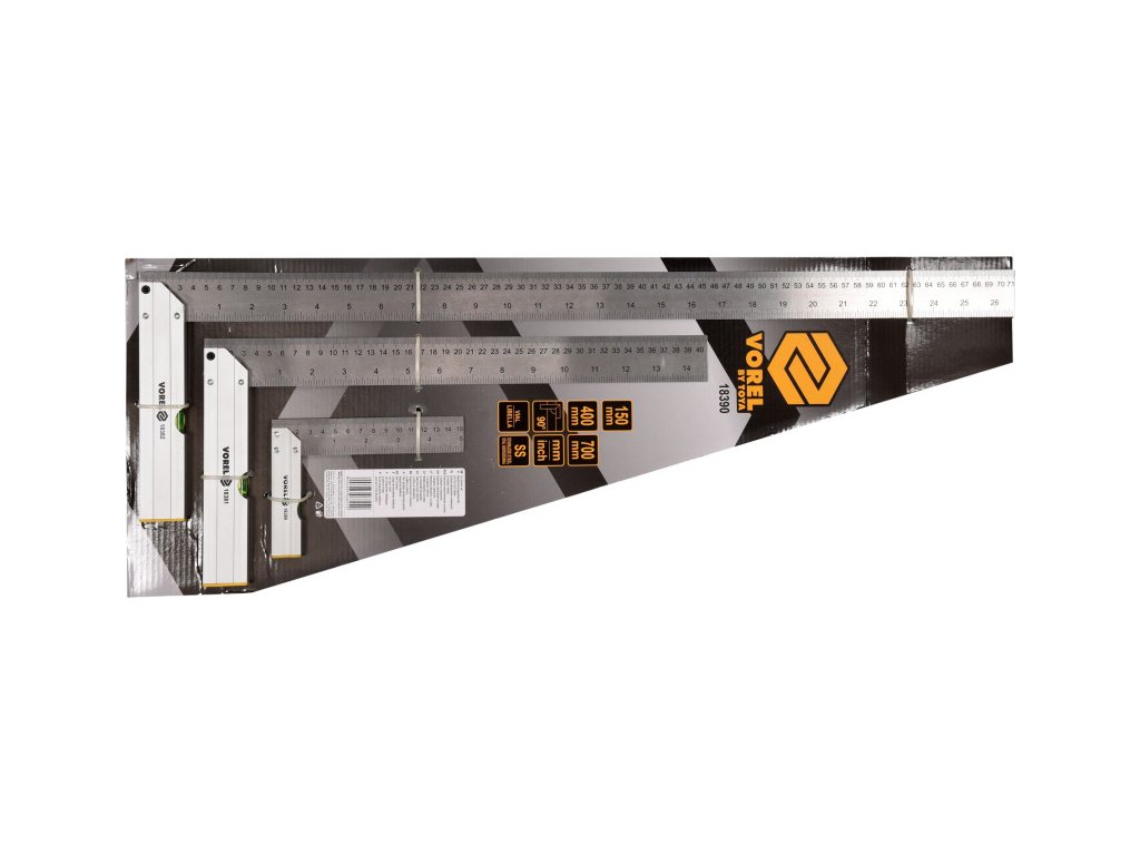 VOREL Súprava vodováha pravouhlá 3 diely 150 / 400 / 700 mm inox