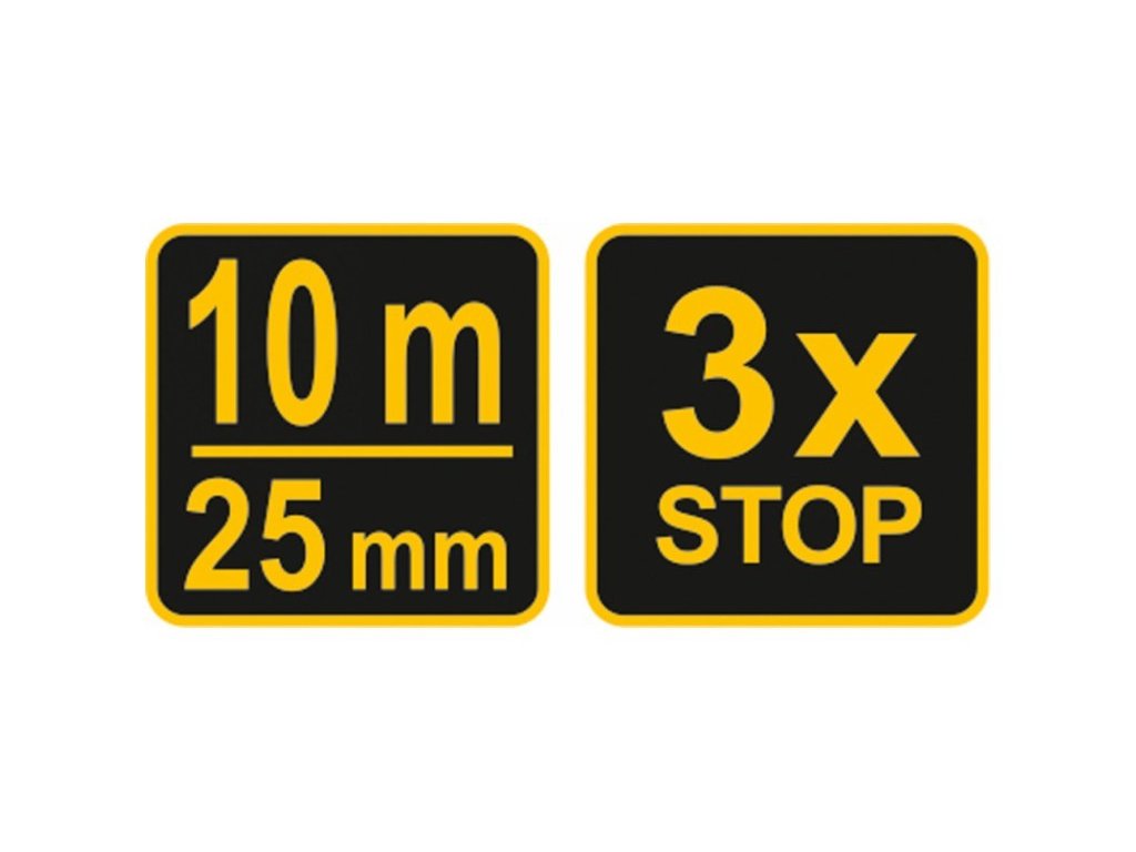 VOREL Zvinovací meter 10 m x 25 mm pogumovaný