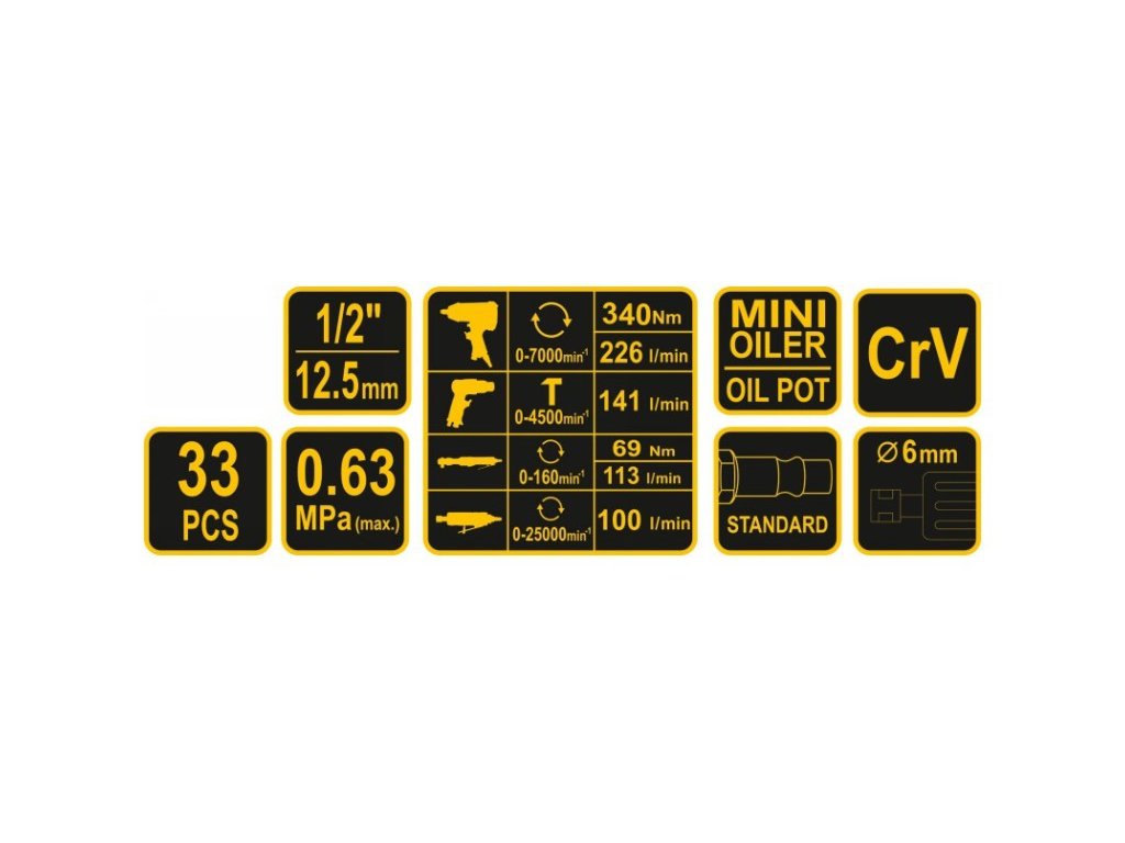 Sada pneumatického náradia set, 33 ks