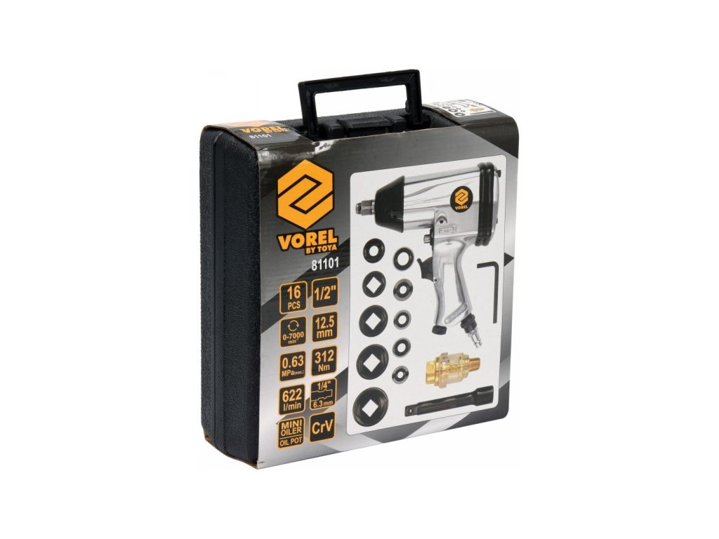VOREL Súprava pneumatického rázového uťahováka a príslušenstva 16 kusov 1/2