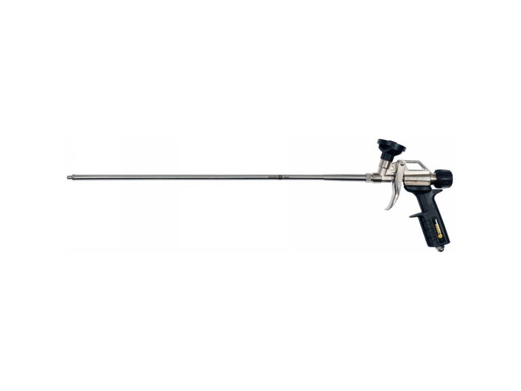 PU habpisztoly 500 mm hosszú lándzsával. Az alváz alumíniumból öntött. Nagy, kényelmesen használható gombja van a hab kiáramlásának szabályozására.