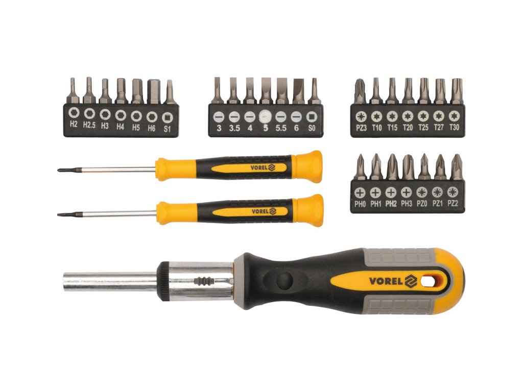 VOREL Sada presných skrutkovačov s račňou 31 kusov CrV