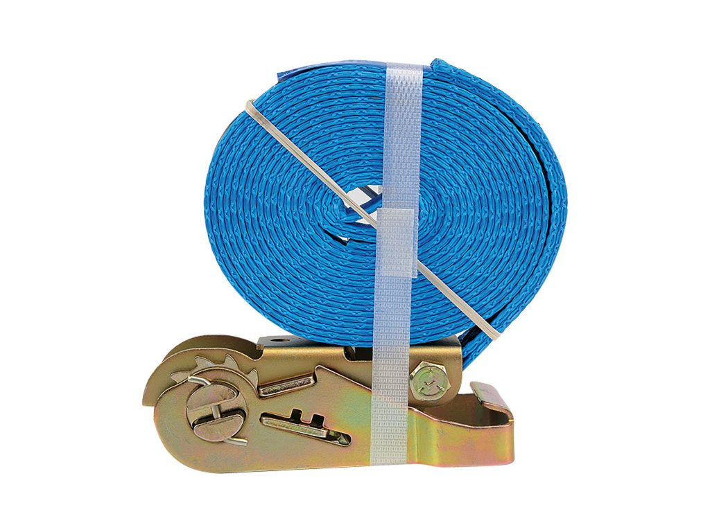 Jednodielny popruh na zaistenie nákladu 1000 daN, šírka 25 mm a dĺžka 4 m s račňovým napínacím mechanizmom.