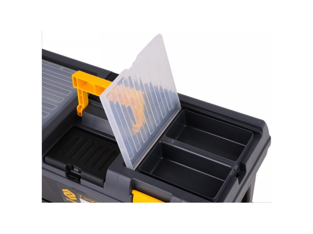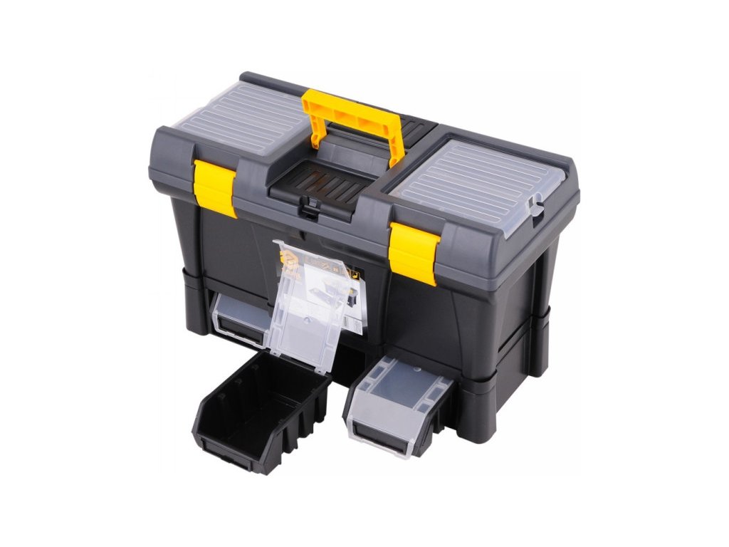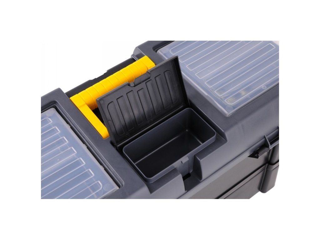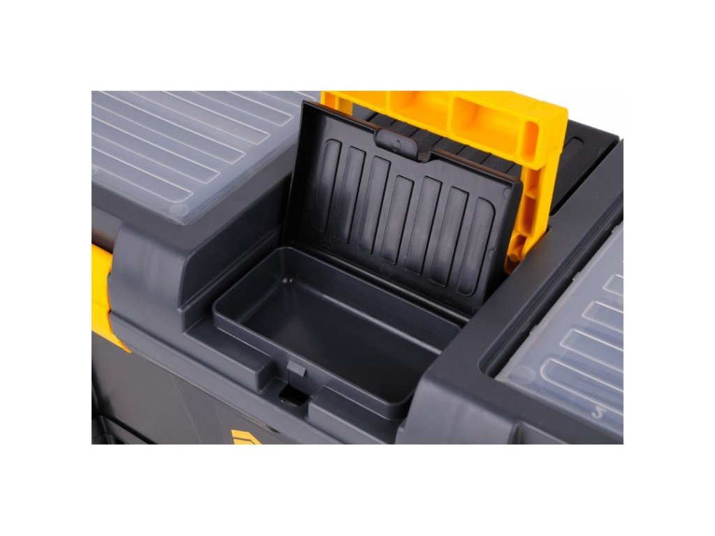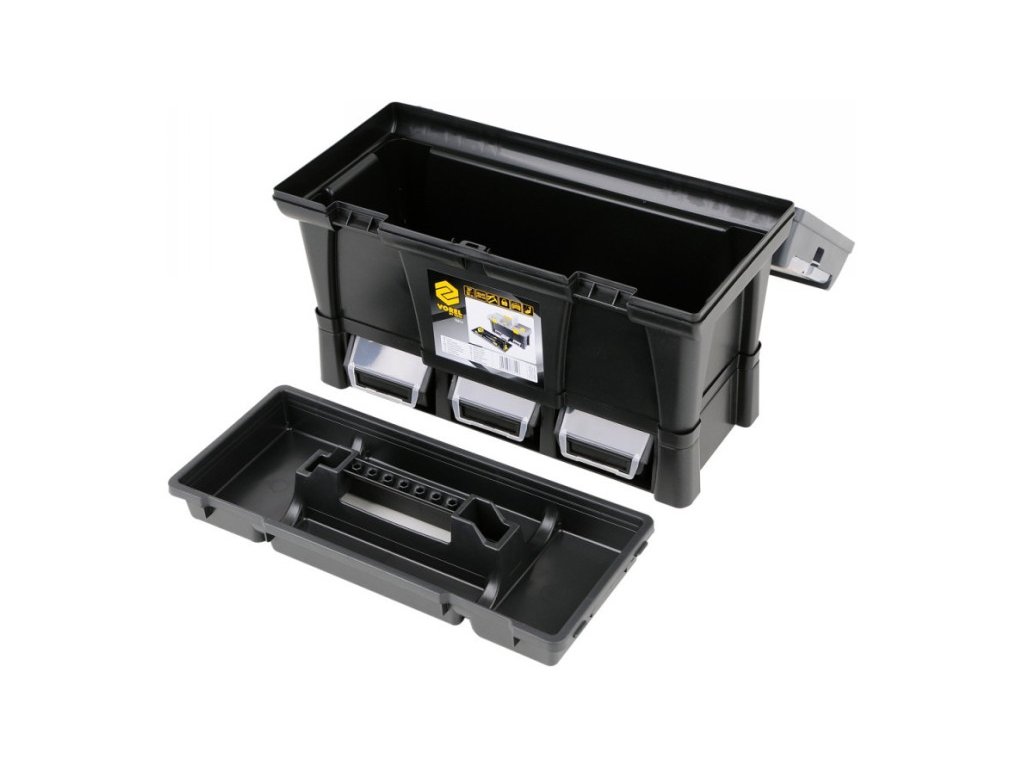 20" szerszámosláda 3 tárolórekeszes modullal. Mérete: 52,5x25,6x32,5 cm. A doboz teherbírása max 25 kg, a modulé pedig további 3 kg. A doboz tetején 4 beépített szervező található fedéllel. A doboz oldalán kényelmes fogantyúk vannak a hordozáshoz. Belül kihúzható szerszámtartó tálca található. Az alsó modul 3 db 78831-es típusú S méretű tárolódobozzal van felszerelve, melyek méretei 116x161x75 mm. A tárolódobozok kihúzhatók és lecserélhetők más eszközökkel, amelyekkel felszerelhető a tároló vagy a szerszámtábla. A tárolódobozokon továbbá 78832-es fedelek vannak, amelyek megakadályozzák a tartalom kiömlését a kezelés során.