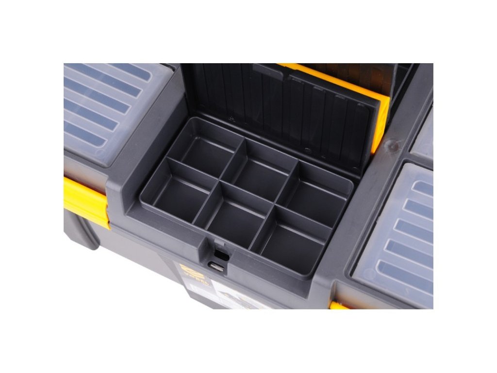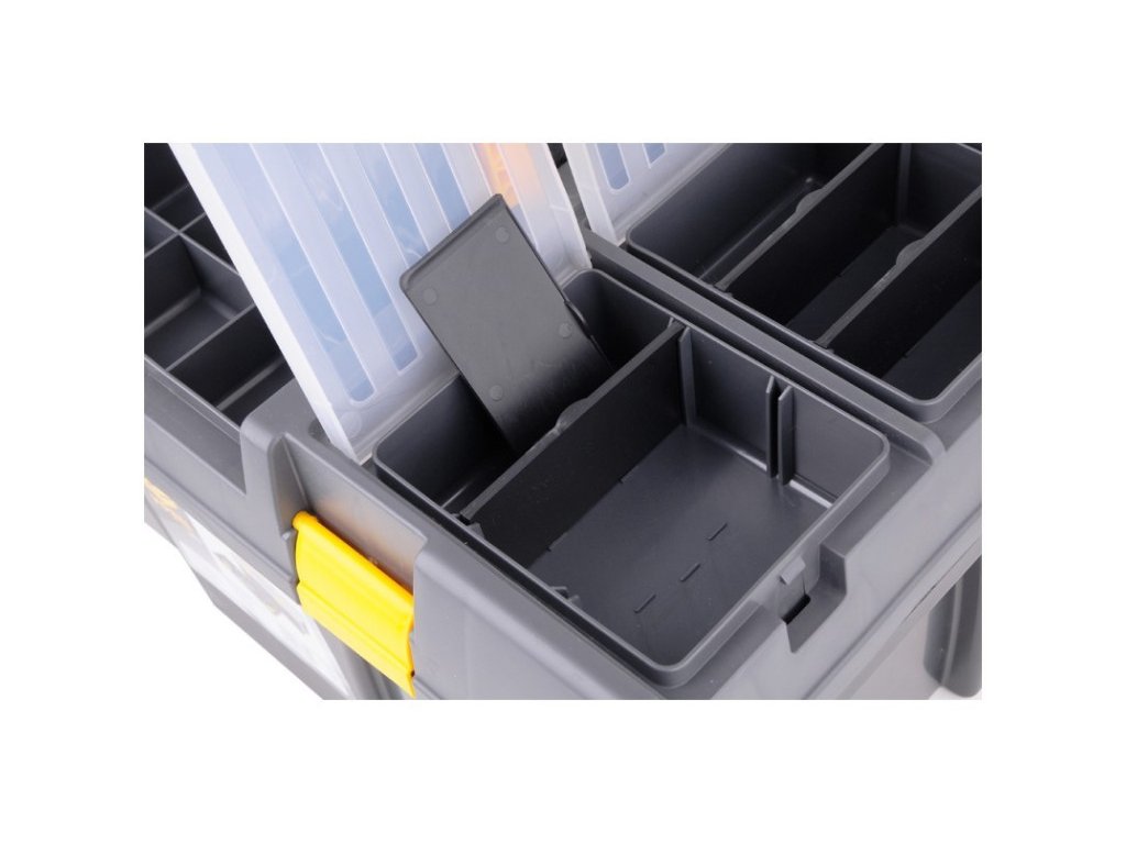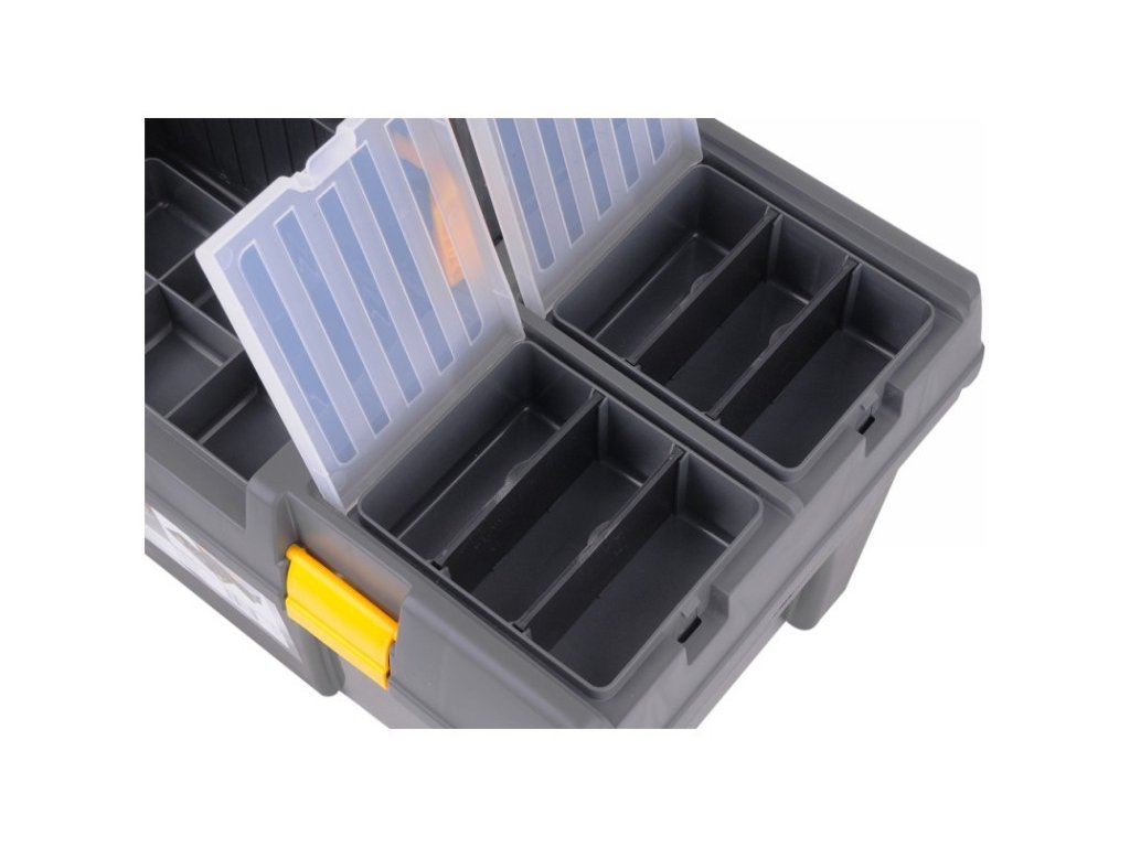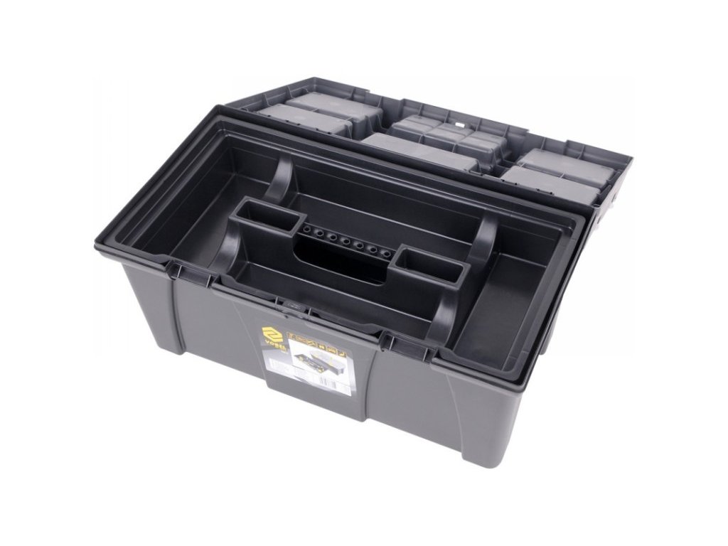 Műanyagból készült. Egy masszív csatt megakadályozza a nem kívánt nyitást kezelés közben. A doboznak speciálisan kialakított oldalfogantyúi vannak a könnyű szállítás érdekében. Különböző típusú tárgyak - például szerszámok, horgászfelszerelések - stb. kényelmes szállítására használják.
