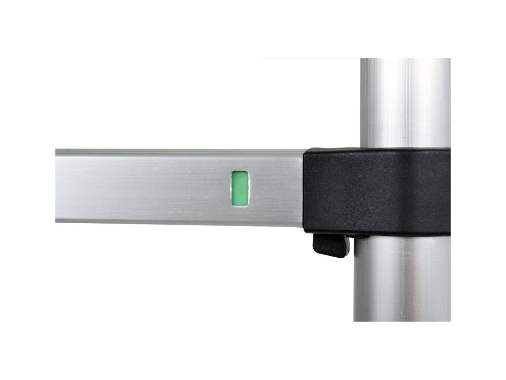 Ezenkívül rendelkezik egy figyelmeztető lépcsőfokkal, amely 1m-re van a legfelső szélétől, hogy jelezze a maximális biztonságos munkamagasságot. Eközben a csúszásgátló lépcsőfokoknak különösen barázdált felülete van, csökkentve a láb csúszásának és esésnek kockázatát. Emellett a létrának kontúros gumi csúszásgátló talpai vannak, hogy biztosítsák a jó tapadást a talajon és megvédjék azt a karcolásoktól.