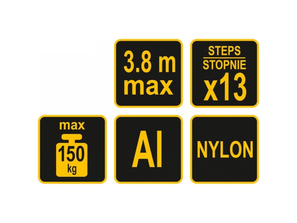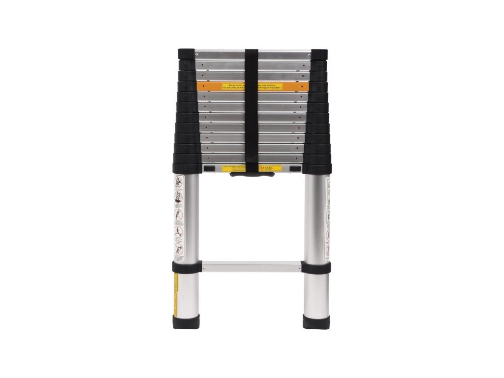 3,8m-es teleszkópos alumínium létra, 13 lépcsőfokkal. Automatikus összecsukható rendszerű teleszkópos létra. Készült az aktuális Európai Unió irányelveknek megfelelően, és megfelel a EN131-6: 2015 standardnak. Ennek köszönhetően a hajtogatási folyamat nagyon kényelmes, gyors és mindenekelőtt biztonságos. Megakadályozza ugyanis az ujjak összeszorítását.