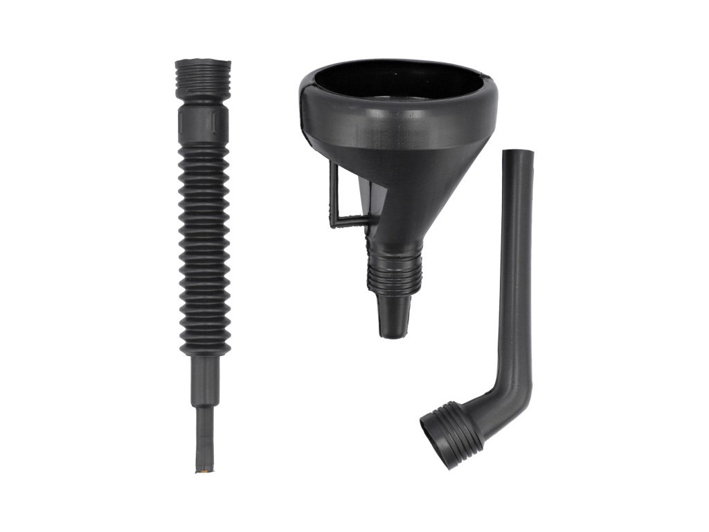 3 darabos tölcsér, üzemanyaghoz, olajhoz és más működő folyadékhoz. 2 cserélhető hegygel van felszerelve (egyik rugalmas, a másik merev, 50°-os szögben hajlított), hogy megkönnyítse az öntést. Széles körben használják garázsban, műhelyben és autószervizben.