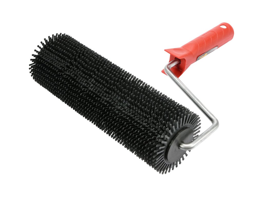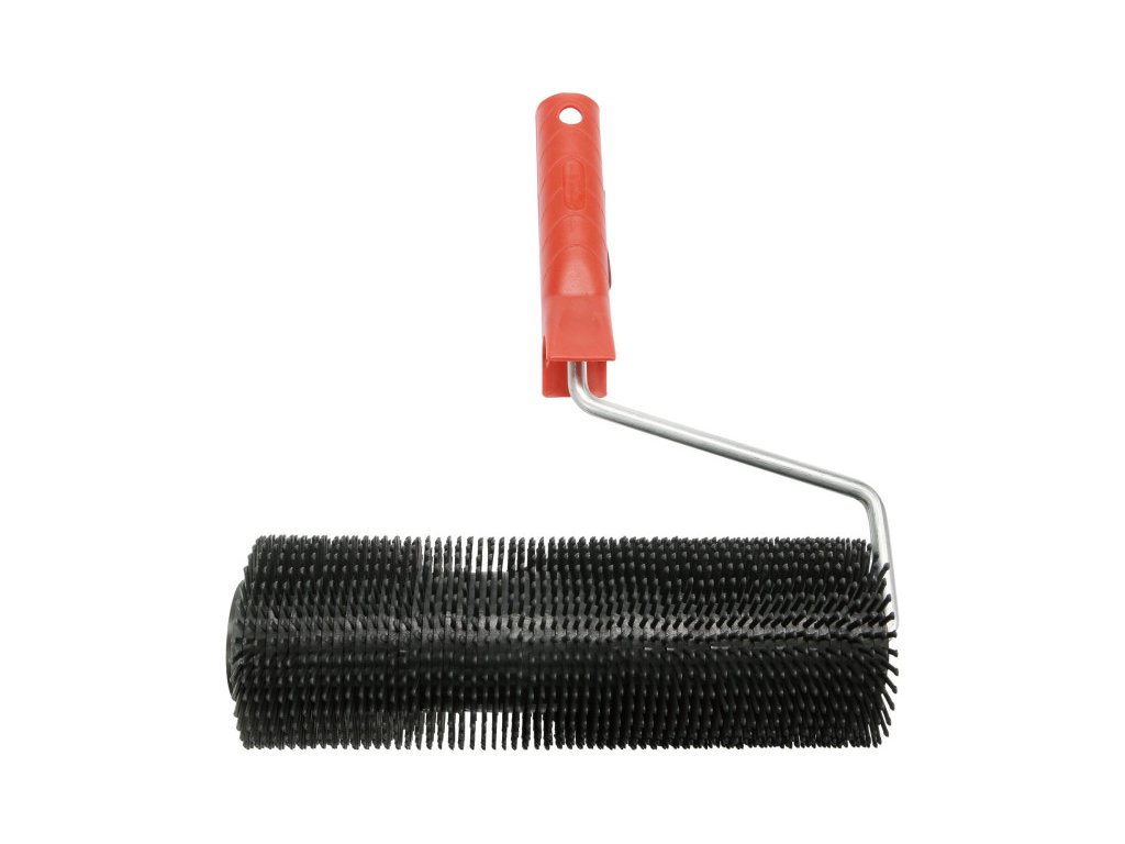 A 230x75 mm-es műanyag nyél frissen készült ragasztó és beton esztrich szellőztetésére szolgál. Az ergonomikus műanyag fogantyú nagy munkakényelmet biztosít. A tűs henger átszúrásával lehetővé teszi a légbuborékok kiengedését, és megakadályozza a padlóban lévő hézagok kialakulását.
