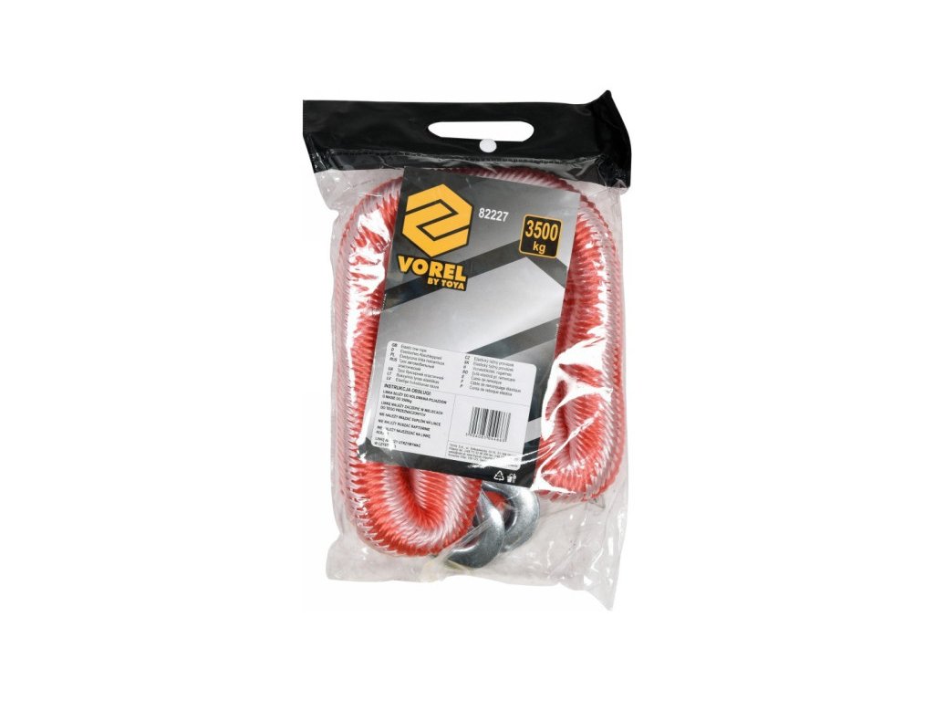Pružné ťažné lano s hákom na ťahanie vozidiel s maximálnou hmotnosťou 3 500 kg VLASTNOSTI• odolné, polypropylénové vlákna• 2 silné, uzamknuté háky• dĺžka: 3,5 m• roztiahnutie: 1,5–4 m Technické údaje Nosnosť (kg) 3500 Dĺžka (m) 3,5
