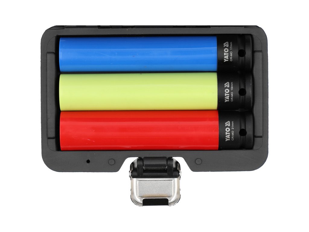 YATO 3-dielna sada extra dlhých nástrčných kľúčov 1/2″ 17/19/21 mm pre ľahké hliníkové disky, CrMo