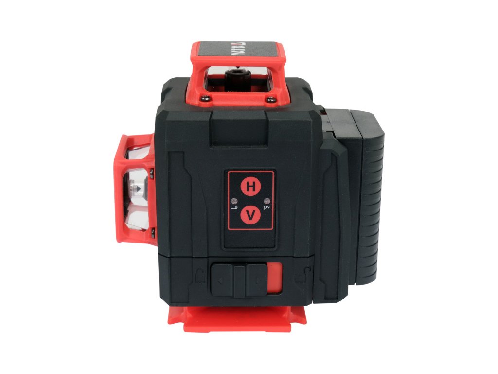 A lézer egy újratölthető akkumulátorral működik, amelynek kapacitása akár 4000 mAh is lehet. A készletben található két újratölthető akkumulátor lehetővé teszi a megszakítás nélküli működést hosszabb időn keresztül. Az IP54 védelmi osztályú, tartós műanyagból készült ház, gumi csúszásgátló betétekkel, porállóságot és cseppállóságot garantál minden irányból érkező esésekkel szemben.