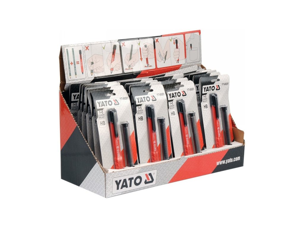 • 1+5 ks HB so sivou grafitovou vložkou Kompatibilné vložky: • YT-69285: Stolárska grafitová vložka šedá HB (5ks/cs) YATO • YT-69286: Stolárska grafitová vložka šedá H2 (5ks/cs) YATO • YT- 69287: Stolárska ceruzková grafitová vložka biela HB (5ks/cs) YATO