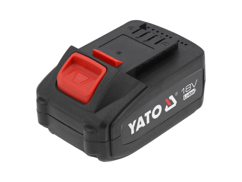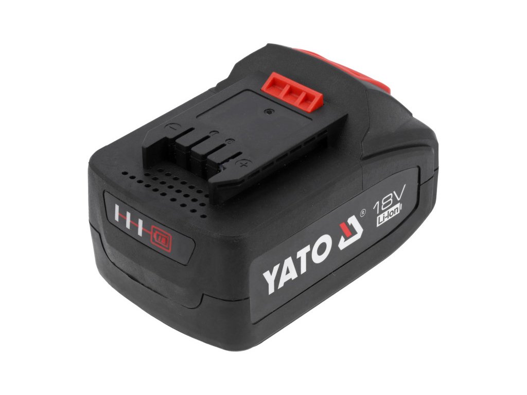 Akkumulátor csomag a YATO platform 18V-os szerszám sorozathoz. Jellemzője a megnövelt cellavédelem túlmelegedés és teljes kisütés ellen pihenő állapotban. A maximális kimeneti áram 60 A, ami egy 4 Ah-s akkumulátor esetén osztályának egyik legjobbja, és órákon át lehetővé teszi a használatot csavarozóval, dekupírfűrésszel és számos más szerszámmal. Az akkumulátor kompatibilis az összes YATO 18V-os rendszer töltőjével, beleértve a ventilátoros vagy napelemes töltővel rendelkező változatokat is.